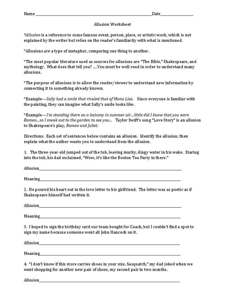 Literary Allusion Worksheets Printable Worksheets And Activities For Teachers Parents Tutors And Homeschool Families